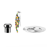 Featuring the iconic Parrot - Proust corkscrew designed by Alessandro Mendini, along with the minimalist Noè stopper and the stylish Stiges bottle coaster, this collection brings together the must-haves for any wine lover.