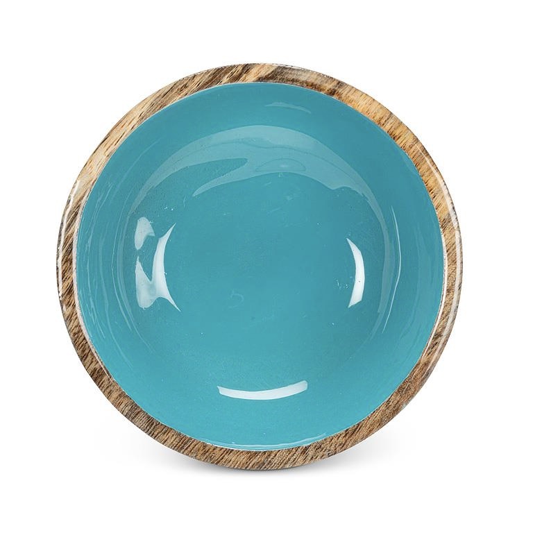 Ce petit bol, fini à la main, est réalisé en bois de manguier. Son intérieur émaillé, évoque une fraîcheur estivale. Décoratif et fonctionnel, il accueille gourmandises, bijoux ou petits trésors.